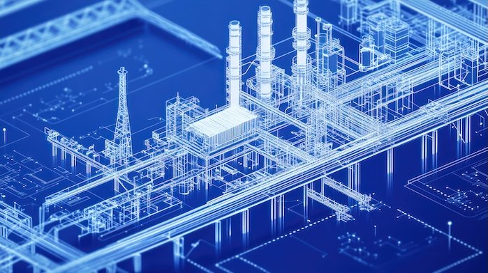Industrial plant blueprint, offshore energy production, technical design, future technology